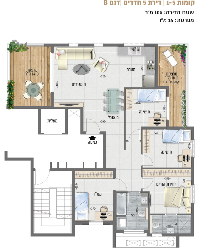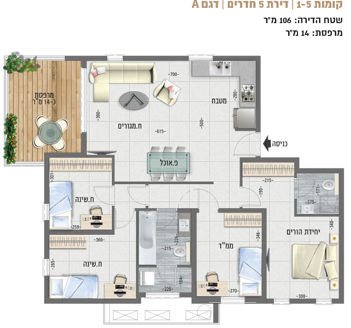 • מחסן וחניה לכל דירה